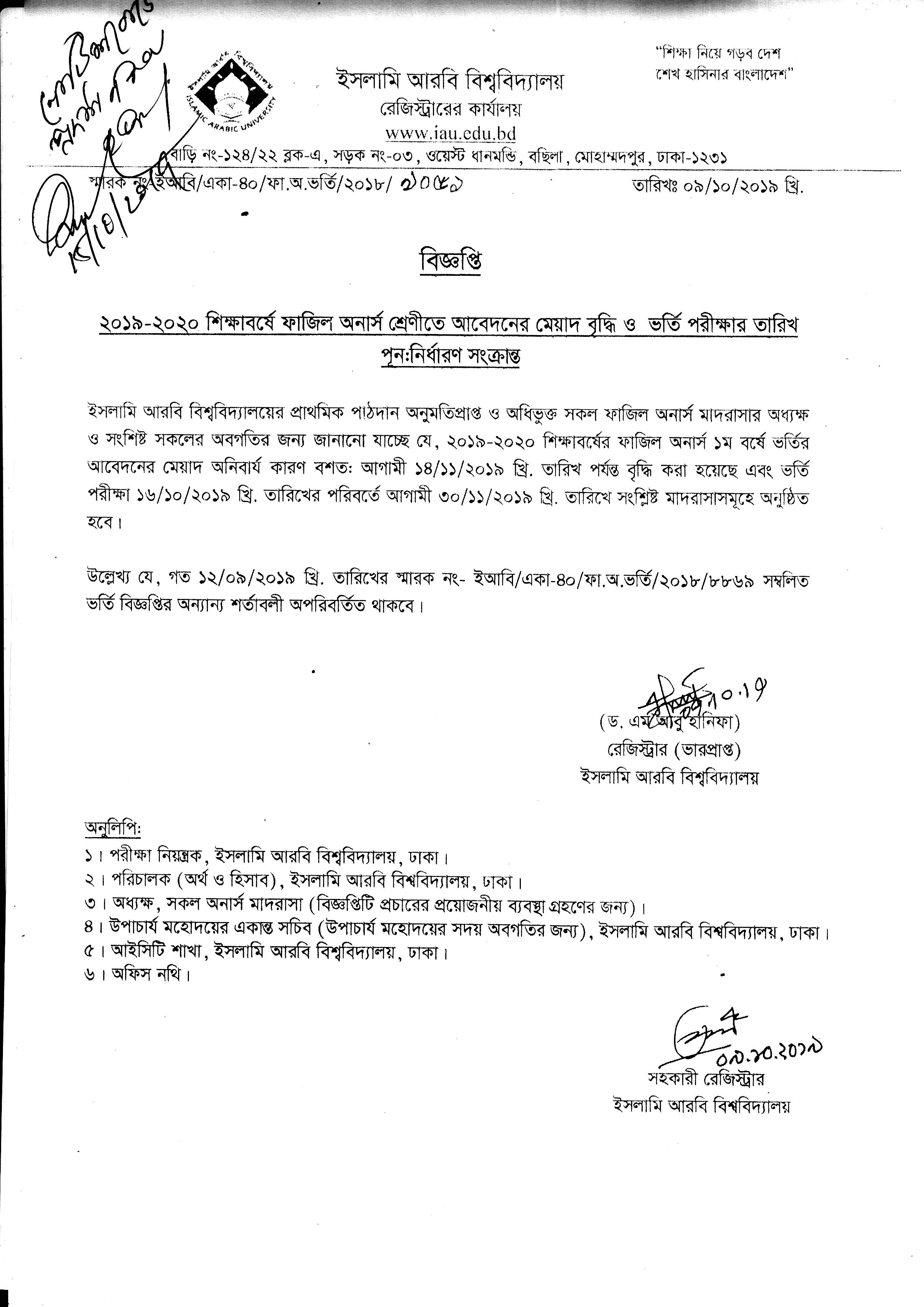 ২০১৯-২০২০ ফাযিল অনার্স শ্রেণিতে মেয়াদ বৃদ্ধি সংক্রান্ত নোটিশ